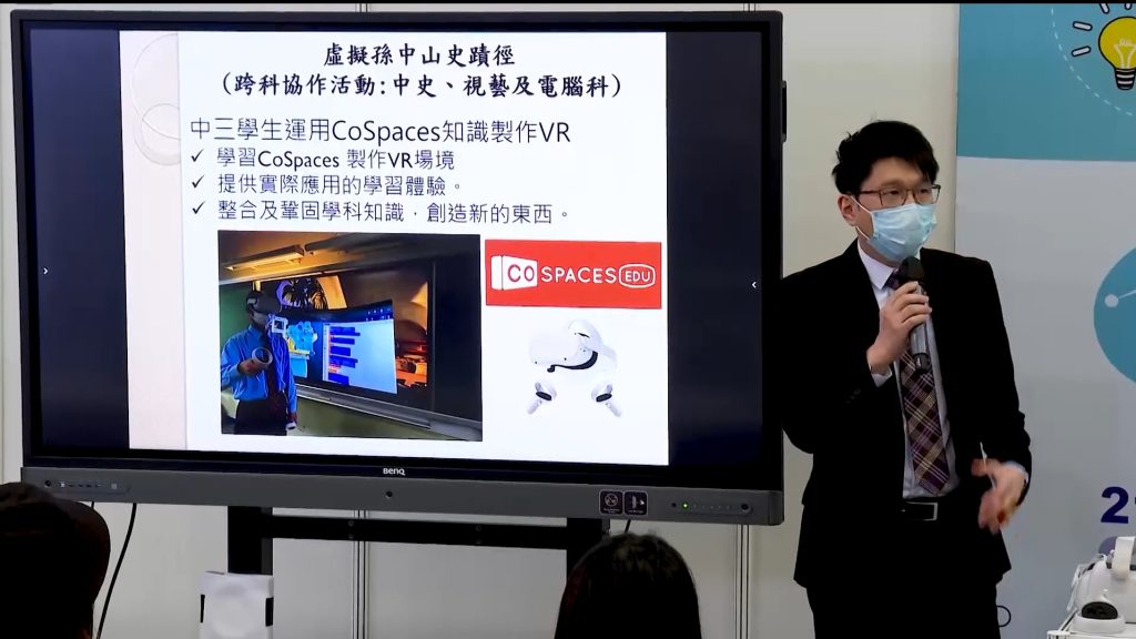 在是次公開示範中,前電腦科主任鍾紹明老師、資訊科技統籌主任林偉興老師、視覺藝術科王月珍老師及中國歷史科科主任孫越老師擔任主講,分享課程的實踐經驗:從VR製作流程、教學設計思路,到實施過程中的挑戰與解決方法,並展示學生作品與學習體驗。