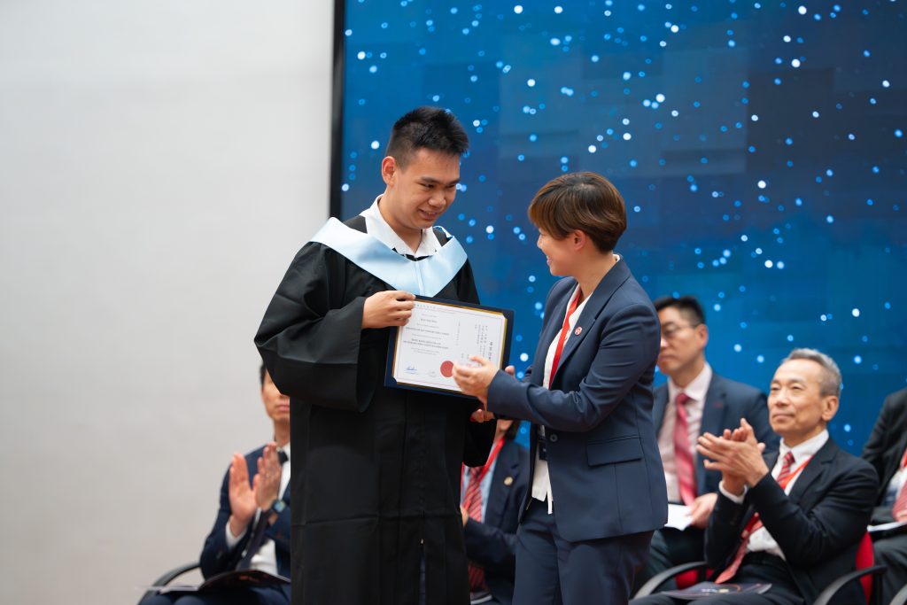 本校有幸邀請嶺南大學科學教研組主任,兼香港地理信息系統榮譽秘書長王沛欣教授擔任主禮嘉賓,並由周雄新傳道祈禱、讀經、祝福,招天聰校監致歡迎辭。畢業生在嘉賓、家長、老師的掌聲中,抖擻自信地從主禮嘉賓手上接受畢業證書及獎狀。