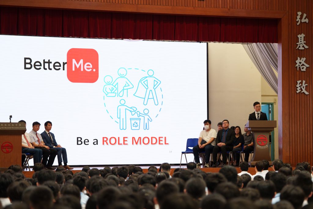 王偉豪校長於典禮中介紹了新加入的教職員,並勉勵全體同學須以「Be a ROLE MODEL」為座右銘,努力裝備自己。他特別提出六項期望,包括信靠神、打好語文基礎、善用時間、勇敢追夢與迎接挑戰、積極學習與參與,以及主動尋求幫助與保持正面態度,為同學在新學年定下明確的方向。