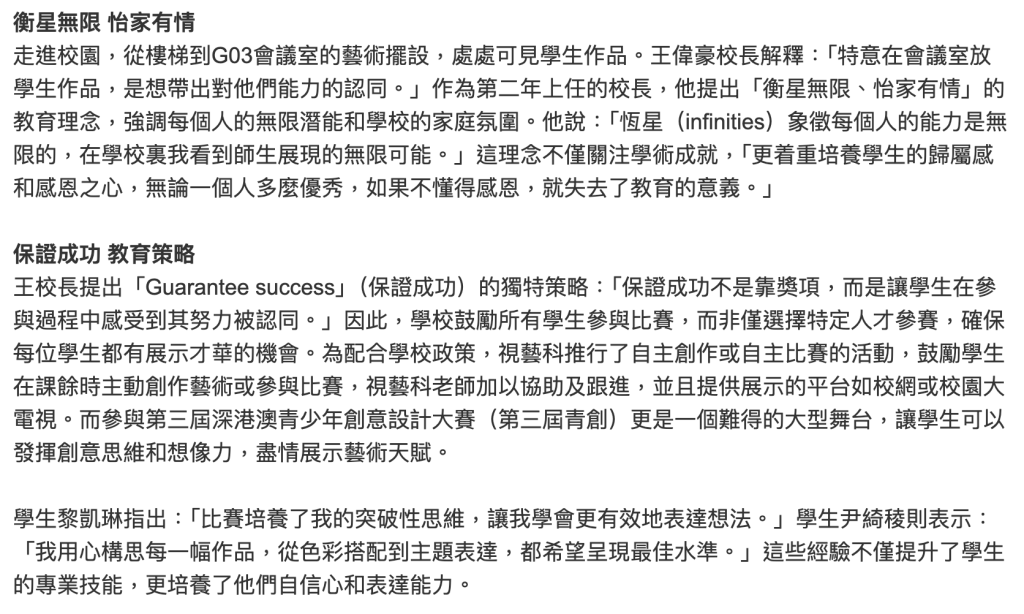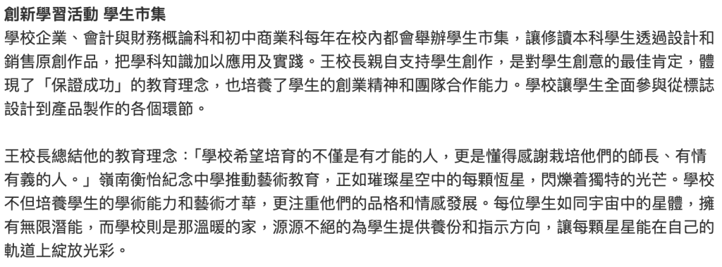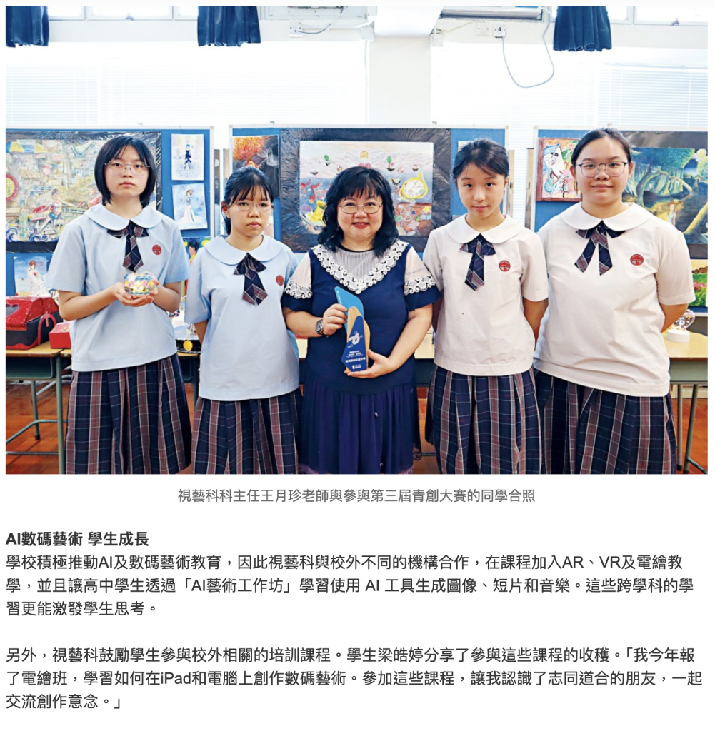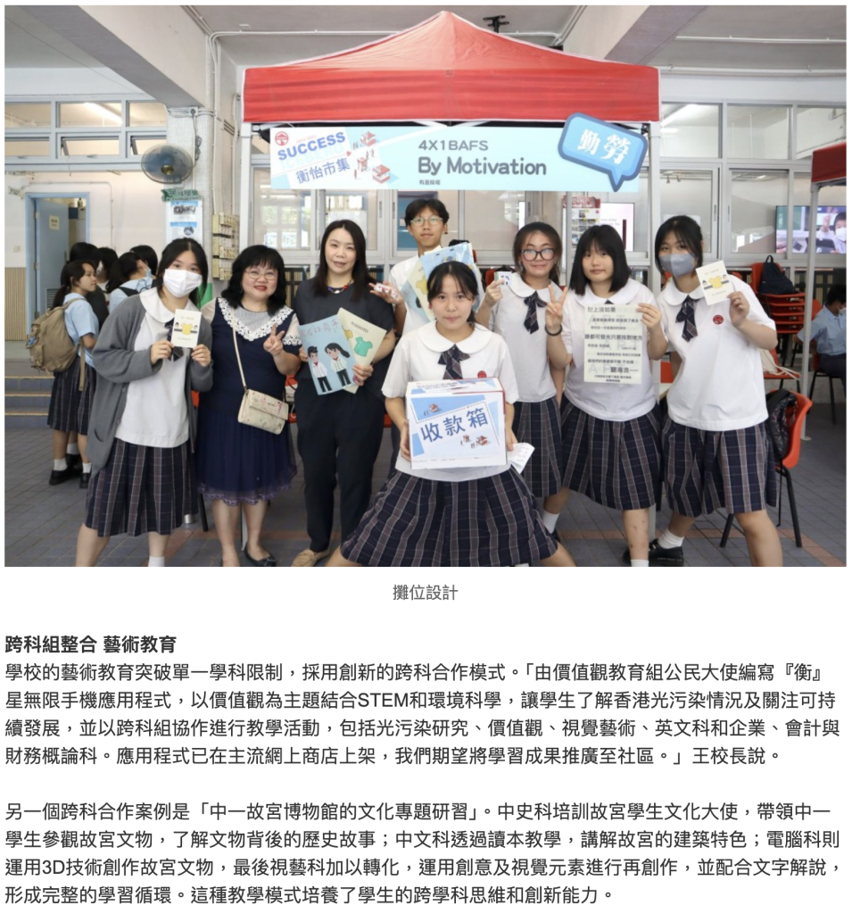 星島日報 – 以學生為本 創造無限可能 嶺南衡怡紀念中學推動藝術教育
