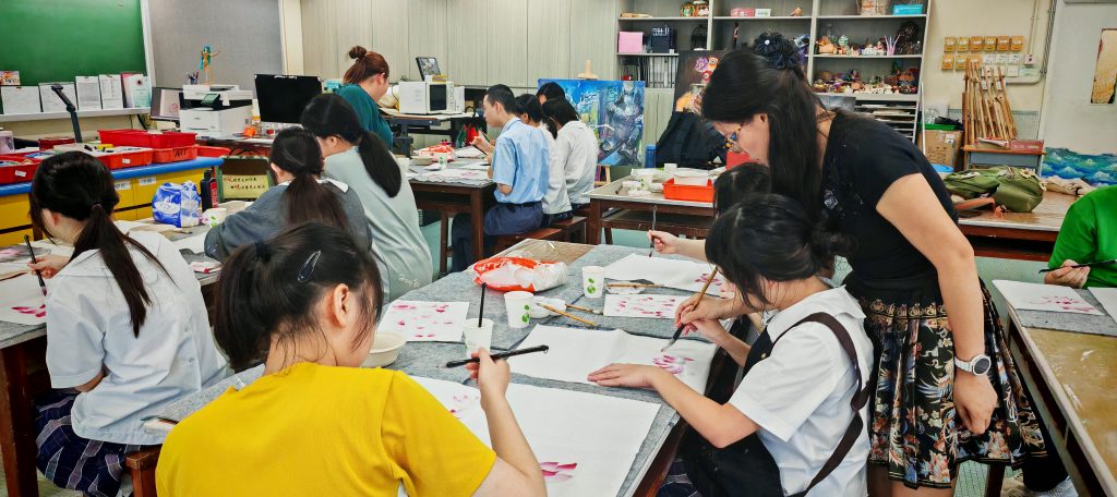 S6選修視藝科同學於2025年10月參加了「津禾文化藝術國畫班」。課程由認識國畫工具開始,老師先向同學介紹毛筆、宣紙、墨錠等,隨後帶領他們由最基本的點、線練起,讓同學在輕鬆塗鴉中掌握運筆技巧。透過臨摹簡化的傳統畫作,學生得以體會國畫「以形寫神」的特色,在落筆之間悄悄萌生對中華文化的興趣。