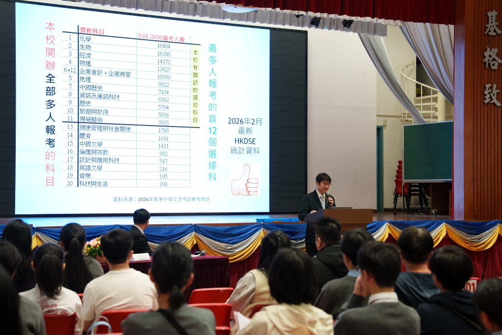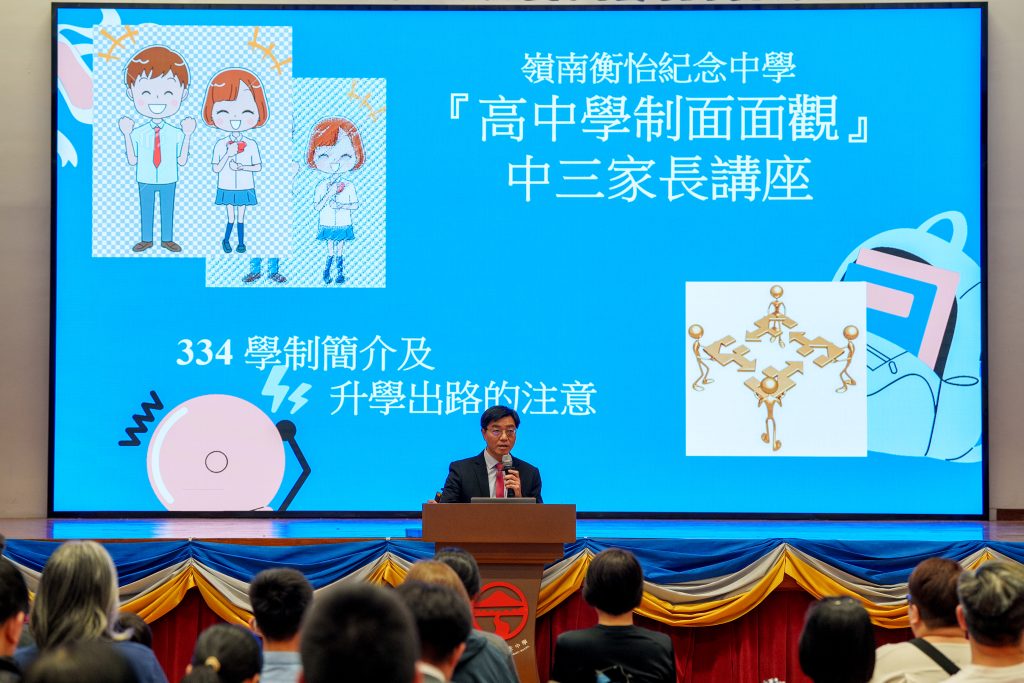 當日,升學組為中三家長及學生舉行專題講座——「新高中學制面面觀」,幫助家長深入了解高中選修課程的組合及升學方向,協助孩子選擇最適合的科目,為未來做好準備。