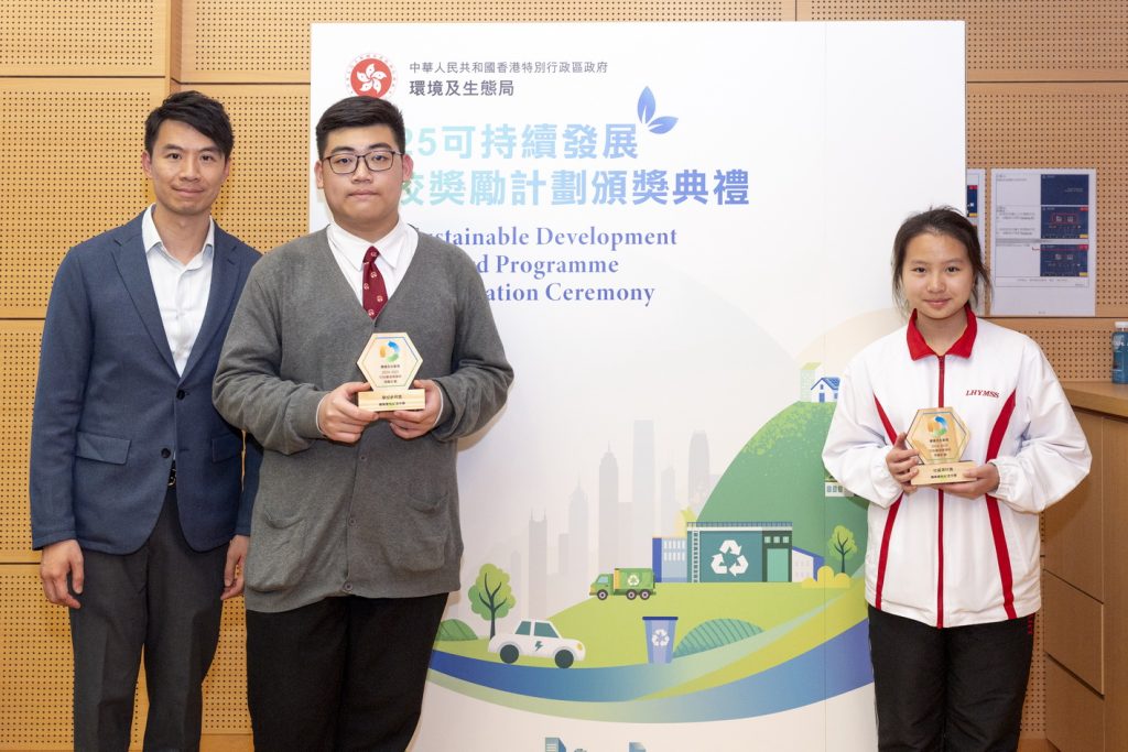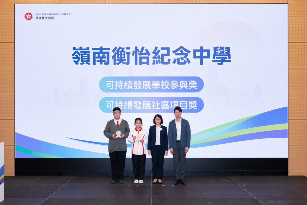 本校鄺誠謙副校長於2026年3月27日(星期五)帶領環保教育團公民大使4A談樂融及4A吳爾騫同學參與由「香港特別行政區政府環境及生態局」舉辦《2024-2025可持續發展學校獎勵計劃》的頒獎典禮。