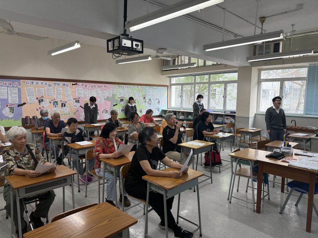4月10日(星期五),本校學生化身「小老師」,為路德會富欣花園長者中心的「老友記」舉辦「長者學苑」普通話唱遊活動。學生們透過與長者合唱《吻別》、《我願意》及《笨小孩》等多首懷舊名曲,將普通話教學融入音樂之中。在歡聲笑語的遊戲與互動中,兩代人共同探索普通話的語言魅力,不僅實踐了「寓學於樂」的理念,更譜寫了一段長幼共融的溫馨樂章。